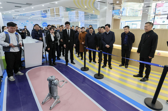 開館儀式后,顧興旺一行前往館內(nèi)創(chuàng)造工坊、科學實驗室、MR全息體驗館、無人機主題空間等區(qū)域參觀。他強調,“一館一基地”的順利投入使用,將為市民兒童展示先進的前沿科技成果,讓市民兒童了解現(xiàn)代科技的發(fā)展方向和趨勢。場館和有關部門要抓好安全運營,針對不同年齡段兒童開展豐富多彩的科普教育,同時要狠抓兒童動手能力、創(chuàng)造能力鍛煉,進一步激發(fā)培養(yǎng)青少年的創(chuàng)新思維、創(chuàng)新精神和創(chuàng)新能力,更好服務市民生活,著力將“一館一基地”打造成為全區(qū)、全市新的城市品牌,助力城市高質量發(fā)展。
