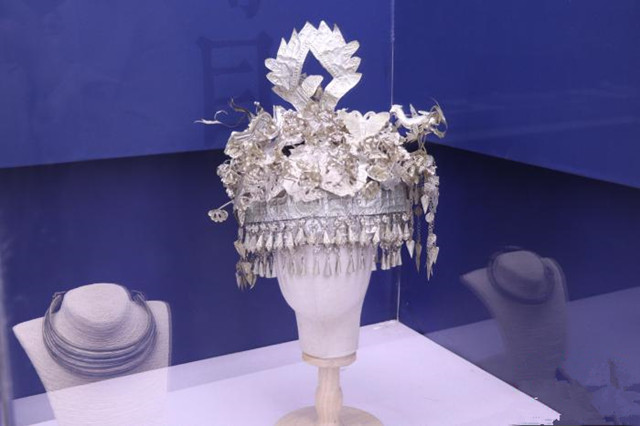圖為服飾博物館內(nèi)展示的苗族銀飾。