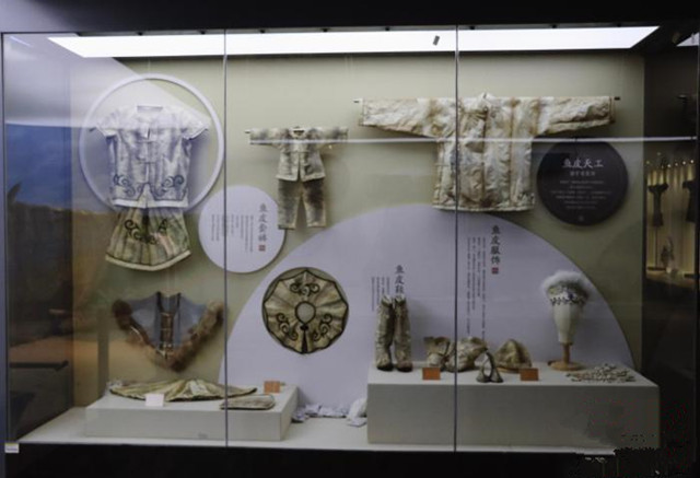 圖為服飾博物館內(nèi)展示的魚皮服飾。
