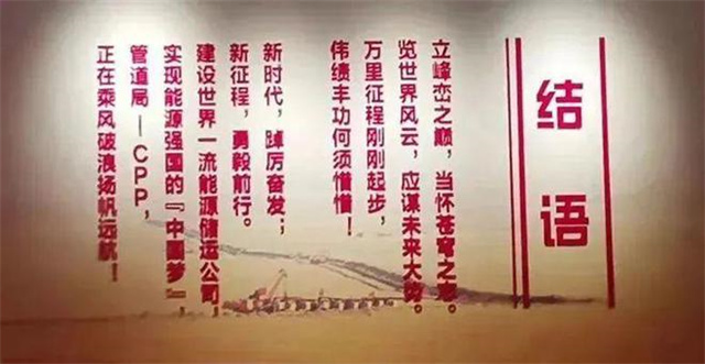博物館在《結(jié)語(yǔ)》中這樣寫道:“管道局——CPP,正在乘風(fēng)破浪、揚(yáng)帆遠(yuǎn)航!”《結(jié)語(yǔ)》與一層的揚(yáng)帆遠(yuǎn)航雕塑首尾呼應(yīng),共同激勵(lì)管道人承繼五十年榮光,譜寫新征程華章,為強(qiáng)國(guó)建設(shè)和民族復(fù)興貢獻(xiàn)能源力量!