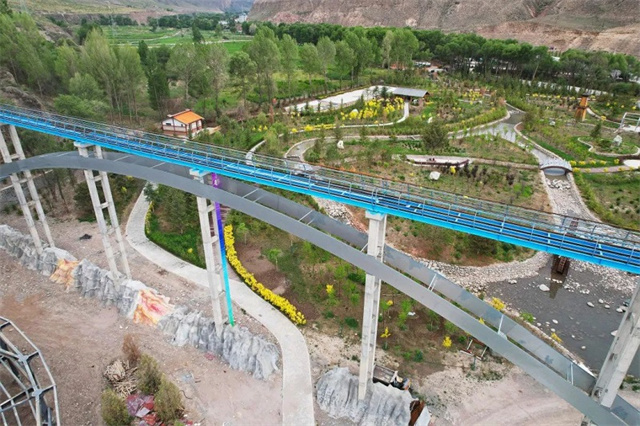走在項目現(xiàn)場,記者被一棟三瓣花形狀的建筑和高聳的玻璃棧道吸引,切割、安裝螺栓、焊接,建筑工人們有的正在進行博物館外立面裝飾裝修,有的身穿護具在玻璃棧道上作業(yè),施工現(xiàn)場一片熱火朝天,吹響了項目建設的“沖鋒號”。仔細端詳之下還發(fā)現(xiàn),這些建筑與周圍的生態(tài)景觀相映襯,散發(fā)出了獨特的自然美。